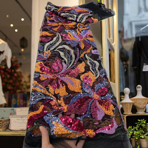 Chất Lượng Cao Đầy Màu Sắc Châu Âu Sequins Thêu Ren Lưới Vải Châu Phi Sequin Tulle Lưới Ren Vải Cho Phụ Nữ Bên Đám Cưới