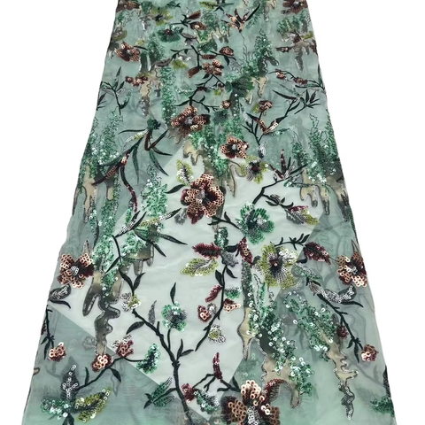 Nhà Máy Giá Chất Lượng Hàng Đầu Guatemala Màu Xanh Lá Cây Sequins Ren Thêu Vải Pháp Wedding Dress Phụ Nữ Quần Áo Cho Đảng