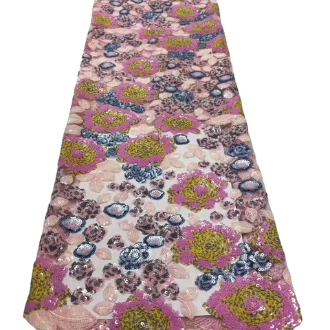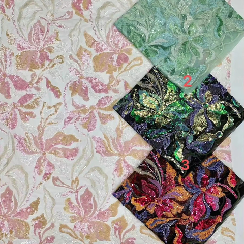 2025 Nhà Máy Giá Chất Lượng Hàng Đầu Guatemala 3D Shiny Sequins Ren Thêu Vải Pháp Wedding Dress Phụ Nữ Quần Áo