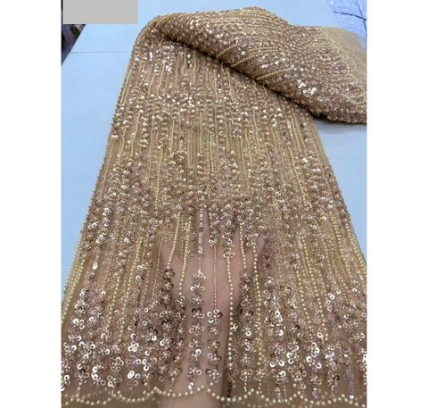 2025 Nhà Máy Giá Chất Lượng Hàng Đầu Guatemala Vàng Shiny Sequins Ren Thêu Vải Pháp Wedding Dress Phụ Nữ Quần Áo